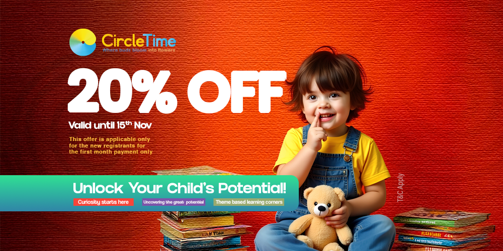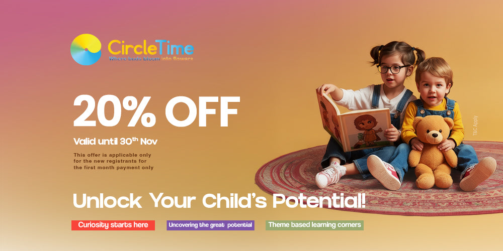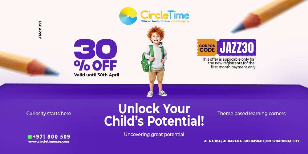 CircleTime is Dubai’s leading child skill development program, designed to nurture young minds through a KHDA-compliant curriculum tailored to the unique needs of the UAE’s expat community. Our carefully crafted syllabus aligns with KHDA guidelines to ensure every child receives a balanced, high-quality learning experience. While our core focus is on the child’s growth, our vision extends to support families and enrich the broader community. At CircleTime, we take our corporate social responsibility seriously, creating programs that positively impact all stakeholders involved.