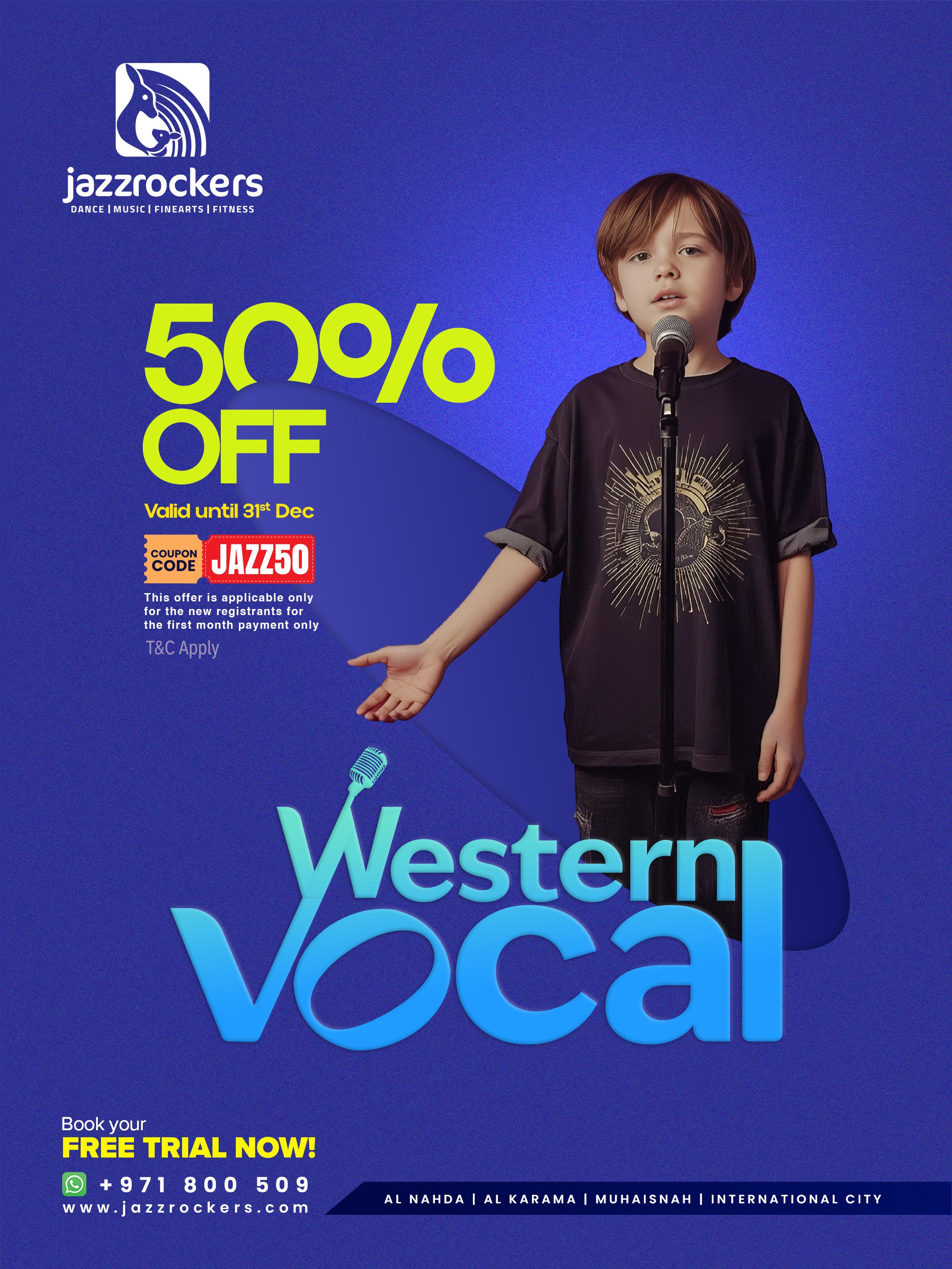 Find your voice with Western Vocal classes at jazzrockers! Enjoy 50% OFF and book your free trial to start singing like a pro.