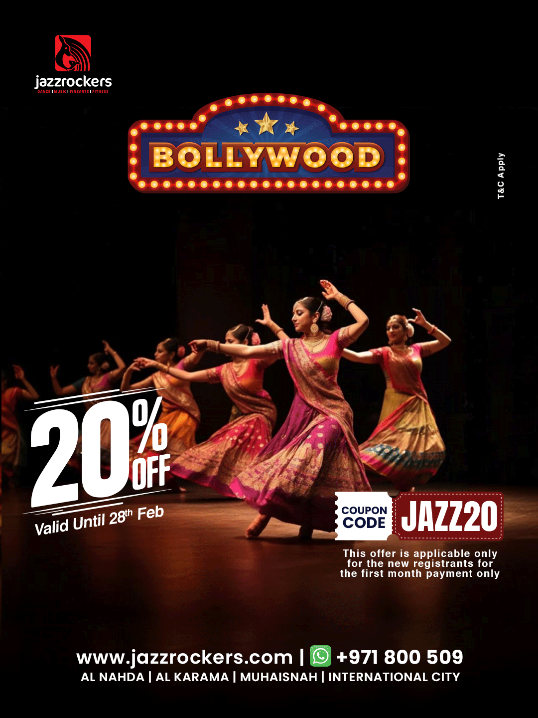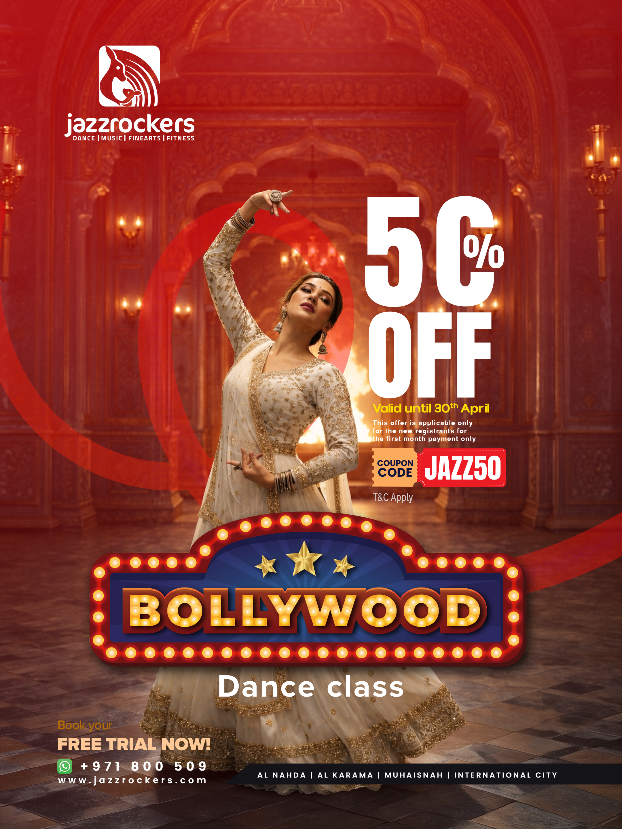 Groove to the beats of Bollywood! 💃✨ Join our Bollywood Dance classes at jazzrockers and bring out your inner star. Enjoy20% OFF for a limited time — dance, express, and shine on stage! 🌟